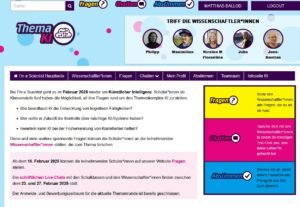 Zwischen dem 23.02. und 27.02.2026 geht die Kampagne ‚I´m a scientist‘ in eine neue Runde, diesmal zum Thema ‚Künstliche Intelligenz‘. Das Online-Angebot zum Mitmachen ist